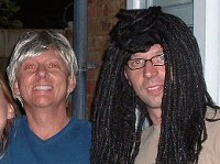 Even though it is kind of cloudy, it does not rain when we are out in the street. We end up at the Old Compton Bar for a beer socializing with a PWC consultant (not plastic but Price Waterhouse Coopers) with the craziest haircut ever. After this beer we strain through the neighbourhood and end up buying some wigs at "Sohi Soho" a little Height Asbury (San Francisco) like store hidden in a little lane. Eric looks like Ellen DeGeneres and I look like Whoopee Goldberg. With our wigs mounted, we had to Eric's favorite Malaysian restaurant to eat Laksa, a spicy coconut noodle soup with chicken and sea food. After the food we are ready to leave the tourist Mecca and rest for the next night out.