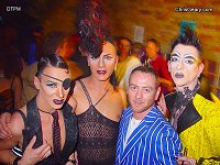 At around 10pm we head into Soho to a bar called "The Edge". We are going to buy tickets for Fiction, my favorite Friday night venue in town. The professional London partier buys the tickets upfront. It is cheaper and shortens the 'cue' at the door. While Eric orders a couple of Red Bull Vodkas, I socialize with the not-from-this-planet looking, long legged, and high heeled drag queens (see picture). It is always good to make new friends.